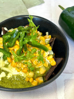 Agrega queso, crema, elotes, rajas y cilantro al gusto.