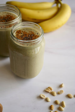 Coloca todos los ingredientes (excepto los toppings) en una licuadora y mezcla hasta que estén completamente integrados.