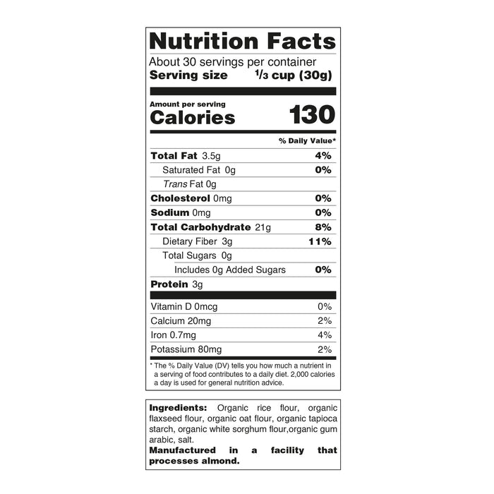 Una mezcla limpia y funcional de harinas que llena tus recetas de fibra, proteína y balance. Esta versátil mezcla es ideal para hornear, espesar y cocinar cada día, hecha con granos integrales y almidones.