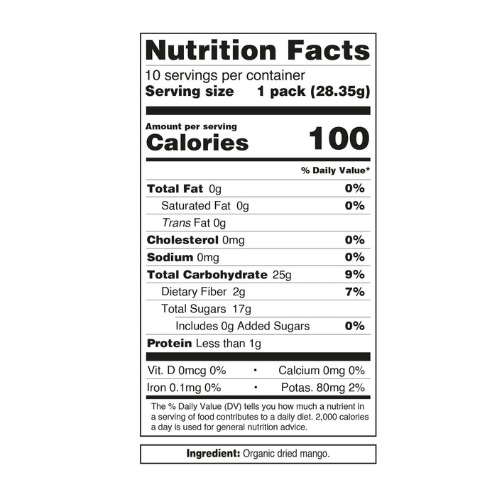 Tropical, naturalmente dulce e irresistiblemente rico. Este mango orgánico en piezas en un snack puro y simple hecho de 100% fruta, sin azúcares añadidos ni conservadores.