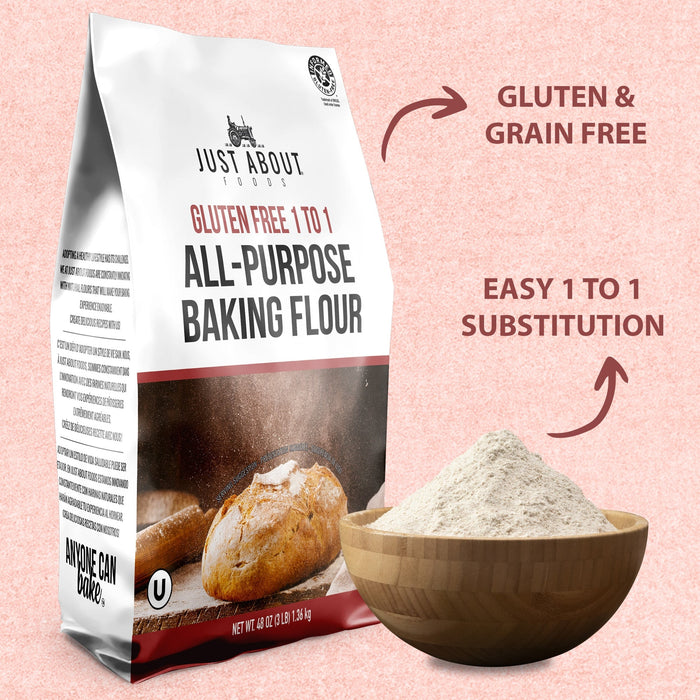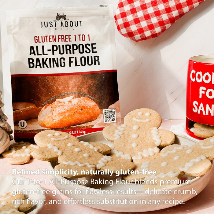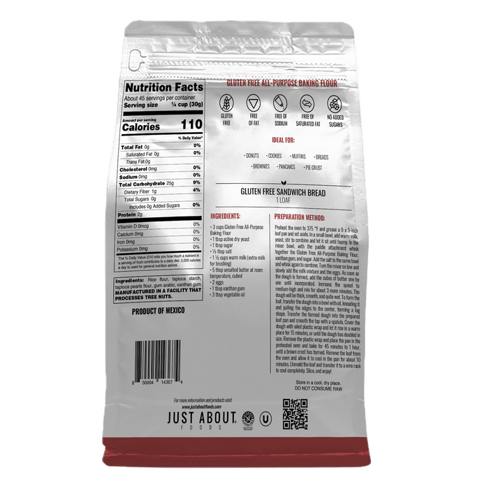 Nuestras harinas gluten-free están hechas de ingredientes simples y naturales, nunca usando conservadores o aditivos. Ya sea horneando, cocinando o mezclando, Just About Foods te ayuda a nutrir tu cuerpo y tu creatividad.