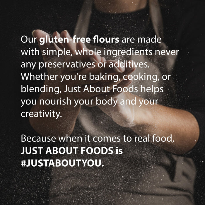 Nuestras harinas gluten-free están hechas de ingredientes simples y naturales, nunca usando conservadores o aditivos. Ya sea horneando, cocinando o mezclando, Just About Foods te ayuda a nutrir tu cuerpo y tu creatividad. Cuando se trata de comida de verdad,JUST ABOUT FOODS is #JUSTABOUTYOU